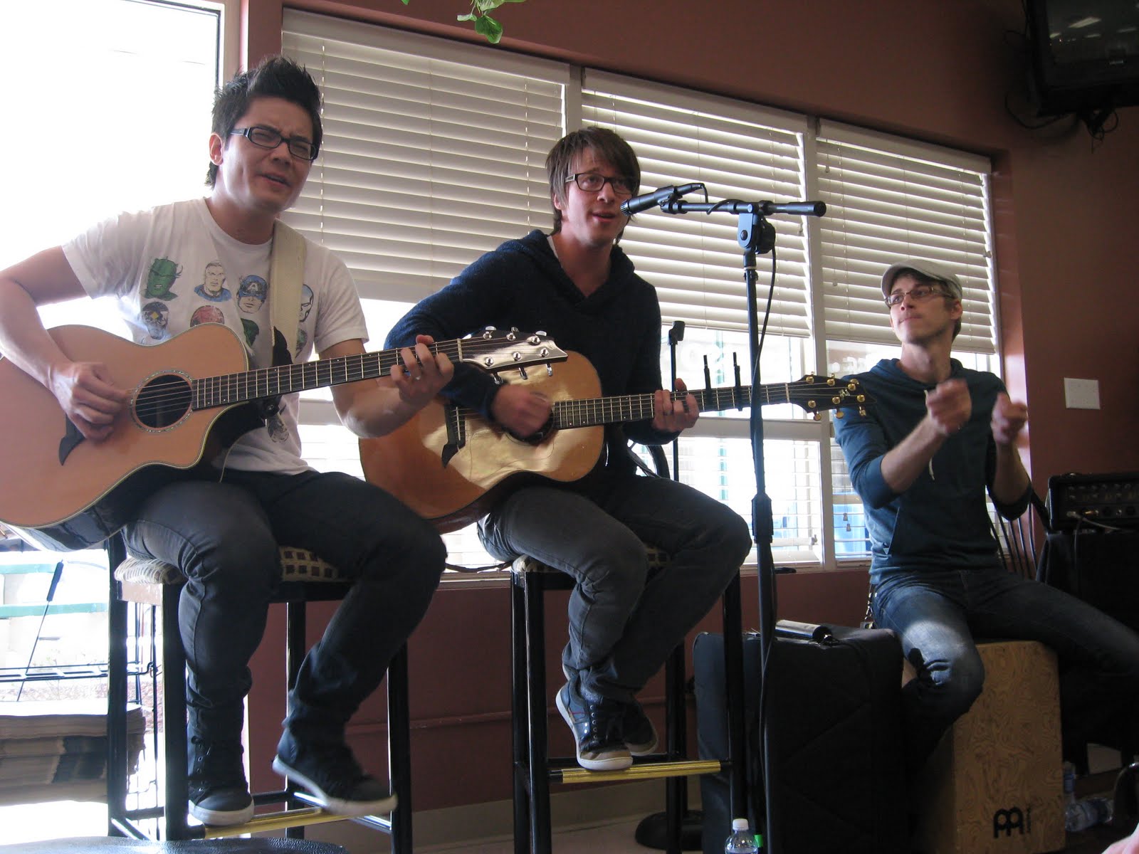 A favorite Christian band of mine, Tenth Avenue North, was performing an accoustic concert at Wellspring at noon, so we headed over there, got front row seats and jammed with them for about 30 minutes - those guys are awesome! Not only do they have an amazing love for the Lord, but are great musicians ---- We both loved it and were singing their tunes the rest of the day. We had a picnic lunch at B-Bops in the beautiful afternoon sun. Delicious cheeseburgers, fries, and Ben even managed to sneak a little Diet Pepsi - his favorite part. The rest of our day was spent at the zoo and park together, until it was time to pick up Kate from school.